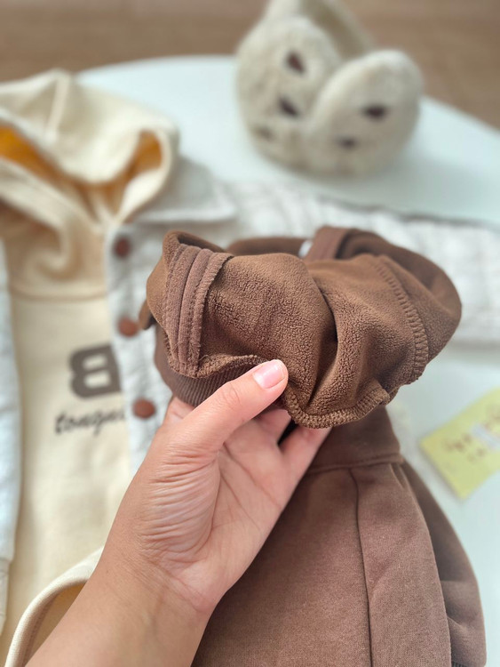 قد هودی ۴۰ پهنا ۳۲قد آستین ۳۵ قد کاپشن۳۸ پهنا ۳۷قد آستین از سرشانه ۲۹ شلوار قد۵۶ فاق ۲۸ دور کمر کشی